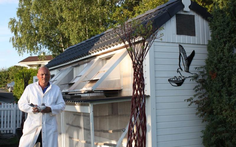 Na foto à direita, Frode enfatiza seu lema: "Vantagens por meio da Pesquisa" (em norueguês: "Fortrinn gjennom forskning"). Na década de 90, Frode trabalhou como gerente de P&D no Centro de P&D da Norsk Hydro, que incluía o grupo de Nutrição Animal. Sendo um criador dedicado, Frode percebeu que alguns dos ácidos orgânicos naturais com os quais trabalhavam na Norsk Hydro tinham um efeito notável na paixão de seus pombos por voar. Assim, ele viu uma nova oportunidade de negócio ao combinar seu interesse profissional em aditivos nutricionais para ração com seu hobby de pombos-correio desde os 12 anos de idade – e a empresa Pigeon Vitality foi fundada em 2000.