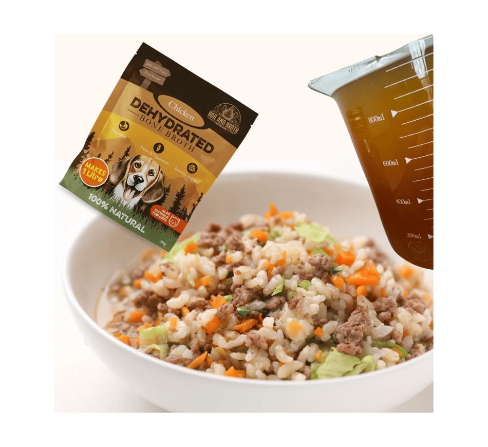 Powdered broth is a super-concentrated broth, meaning you only need to give a small portion to improve your dog's or cat's health. It's important to ensure you follow the recommended dosage according to your dog's or cat's weight.