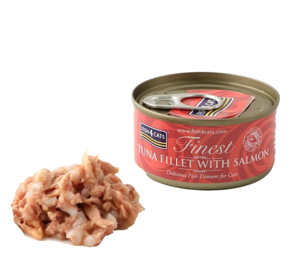 Cats love the taste of fish! And your feline friend will love it even more when you feed it Fish4Cats Finest Tuna Fillet with Salmon. This is a healthy and delicious meal, rich in Omega 3 and an easily digestible protein. With its high fish content, the Fish4Cats wet food range provides a diet that reflects a cat's natural diet, making it the healthiest way to feed your cats.