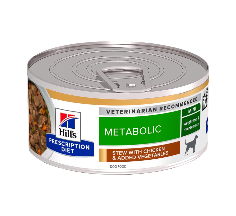 Hill's Prescription Diet Metabolic stew for dogs flavored with chicken and vegetables is a complete dietary food for reducing excess weight and maintaining a healthy weight in adult dogs. This food contains a low energy content.