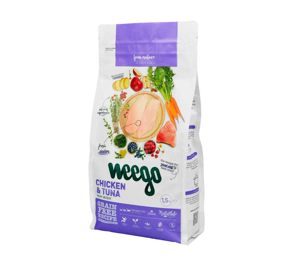 Weego Cat Adult Chicken and Tuna is a complete and balanced dry food, without cereals, suitable for adult cats of all breeds and all sizes. It is a special recipe that mixes fresh chicken meat and tuna to offer delicious croquettes that guarantee a complete and balanced diet that will meet all your nutritional needs to keep you healthy and full of vitality. He will love the taste!