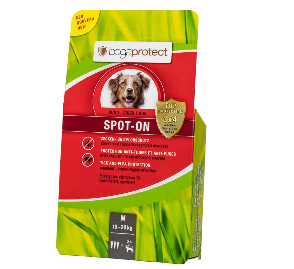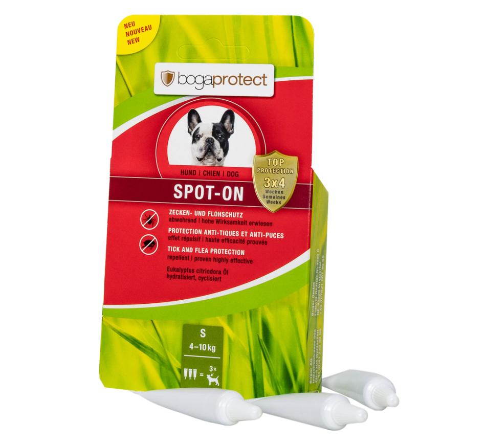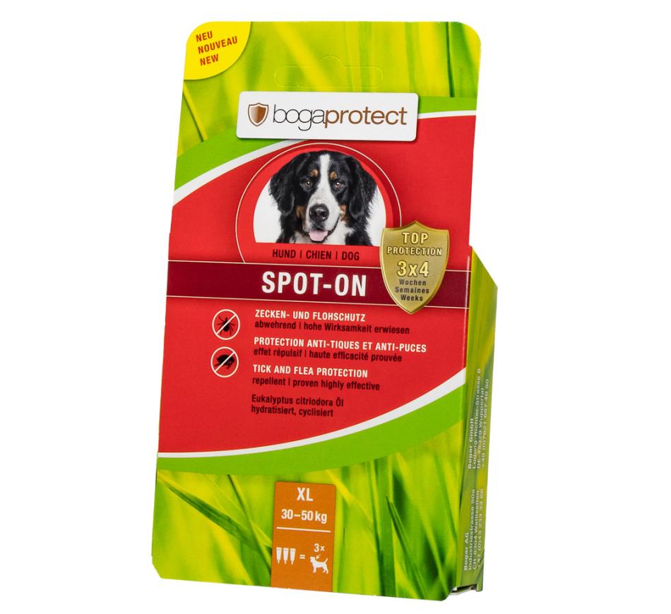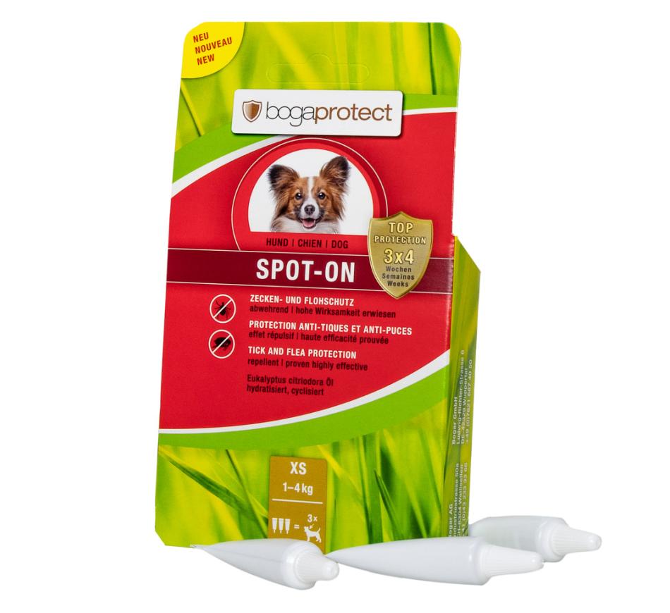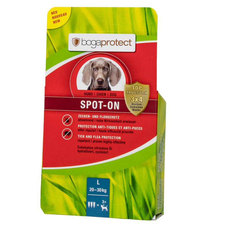 Bogaprotect Spot on Dogs es un repelente natural, para la protección y prevención a largo plazo contra pulgas y garrapatas, con una protección de hasta 4 semanas por aplicación/pipeta.