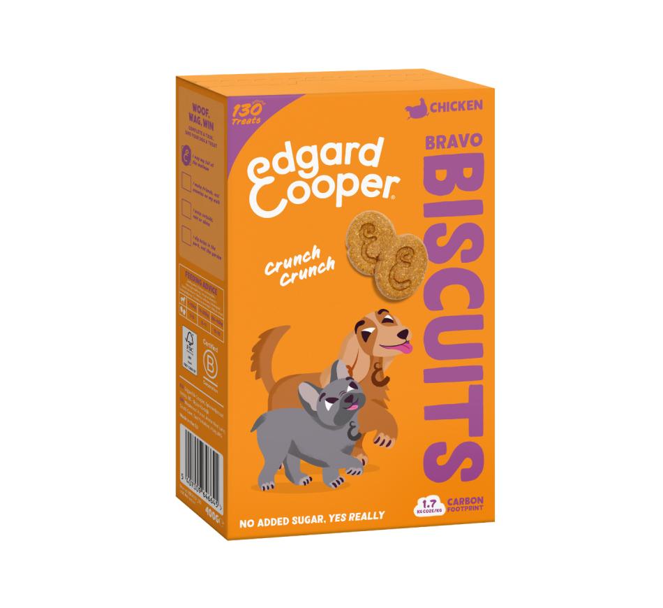 Edgard & Cooper creó este snack para perros con ingredientes naturales de alta calidad para ofrecer galletas saludables, nutritivas y deliciosas. Contienen avena y cereales para aportar fibra y no contienen azúcar, lo que las hace perfectas para contribuir a la buena salud de tu mascota.