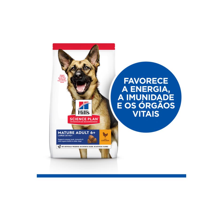 Hill's Science Plan Food for Adult Large Breed Dogs with Chicken (Pollo 7%; Total Aves 11%) es un alimento completo para perros de razas grandes/gigantes a partir de 6 años.