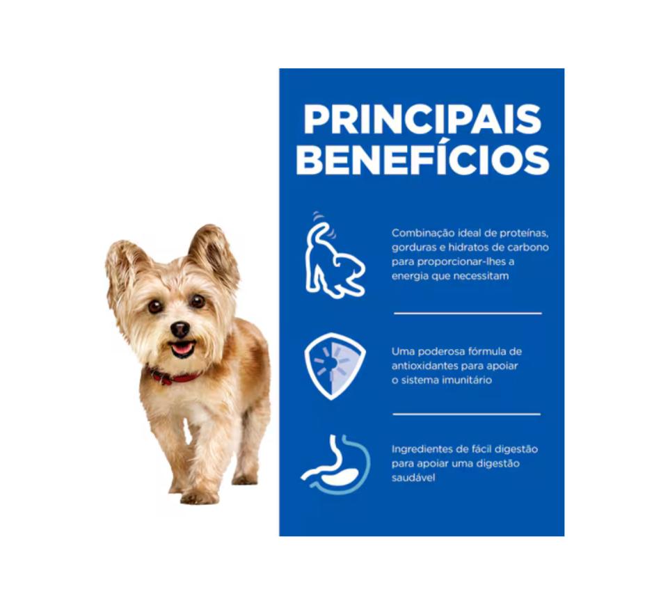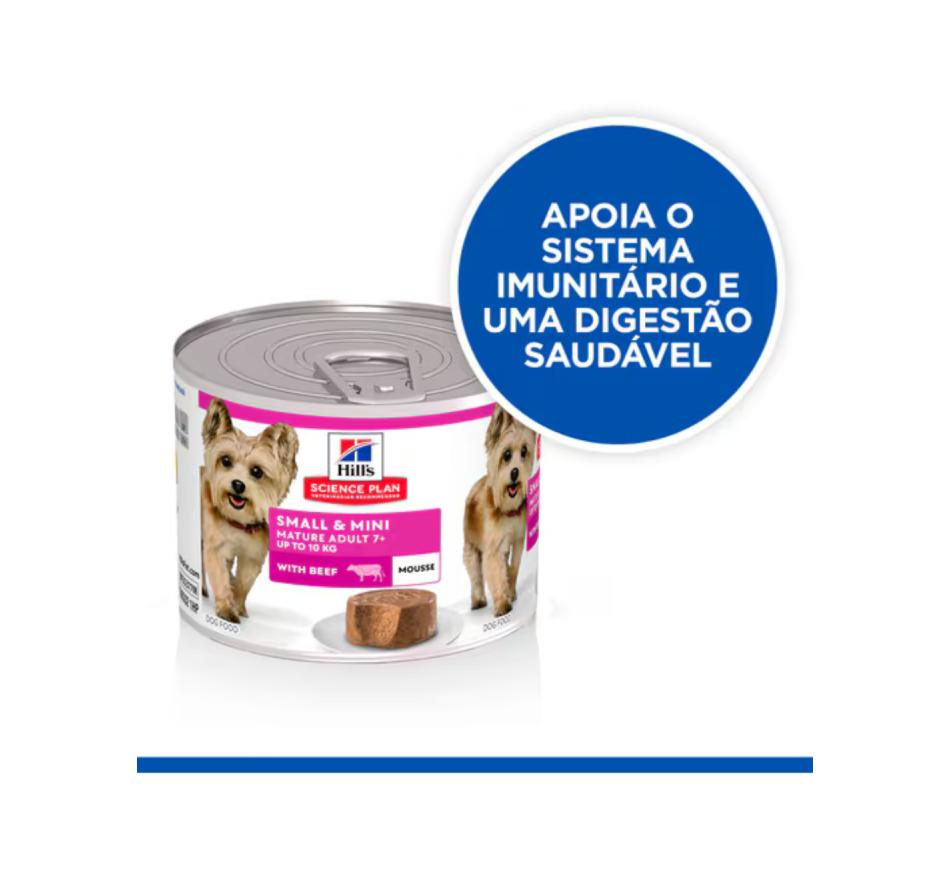 Hill's Science Plan mousse para perros adultos maduros de razas pequeñas y mini con Vaca es un alimento completo para perros adultos maduros de razas pequeñas a partir de 7 años. Es un alimento húmedo diseñado específicamente para las necesidades únicas de su perro de raza pequeña y mini y para favorecer un envejecimiento elegante.