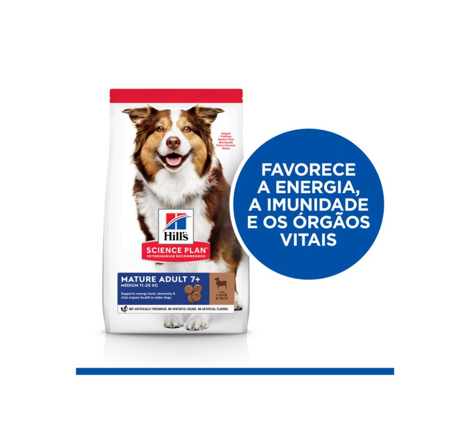 Hill's Science Plan alimento para perros adultos maduros de raza mediana con cordero (8%) y arroz (6%) es un alimento completo para perros de raza mediana a partir de 7 años.