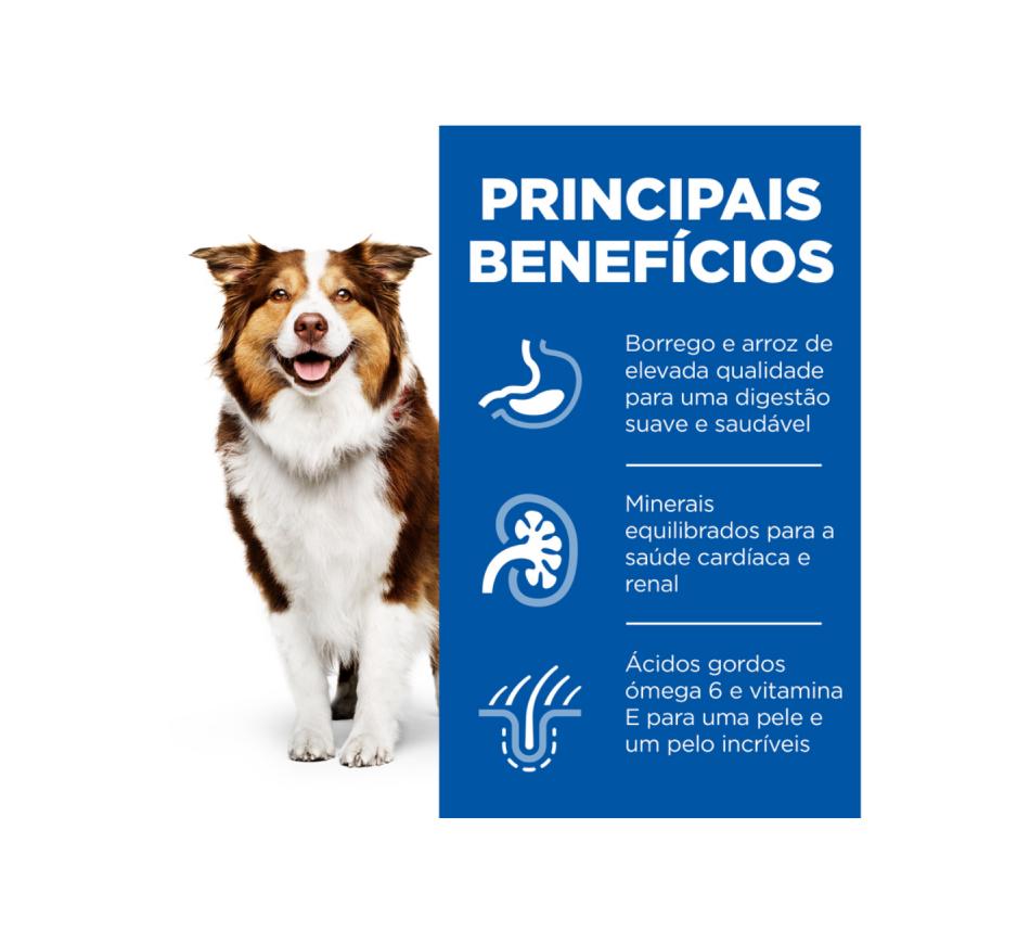 El alimento para perros adultos de raza mediana Hill's Science Plan con cordero y arroz está formulado para las necesidades específicas del envejecimiento. Proporciona nutrición fácilmente digerible con una combinación sinérgica de ingredientes para ayudar a mantener los niveles de energía y actividad.