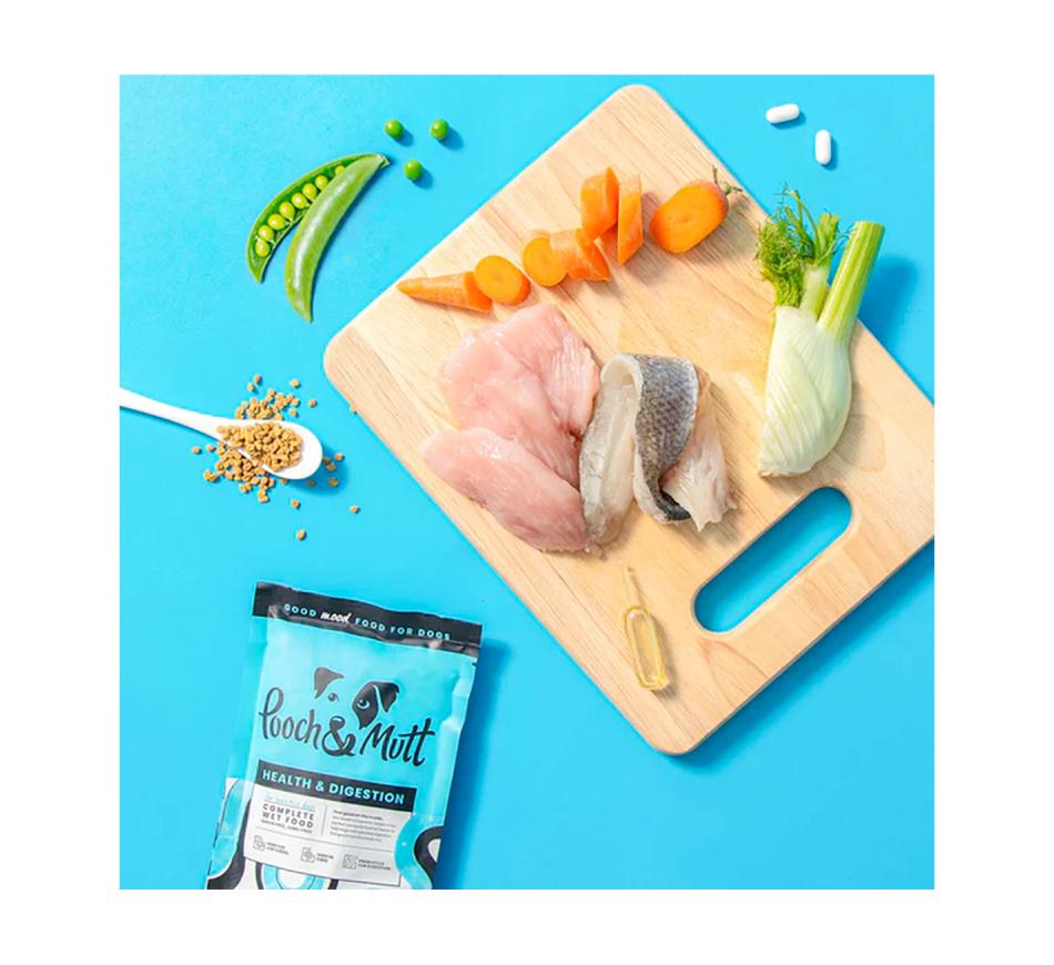 Pooch Mutt Moist Health Digestion Pavo y Arenque alimento cocinado 100% natural es una comida funcional completa elaborada con ingredientes que contienen propiedades activas para el bienestar y una digestión fácil y eficaz, a la vez que te nutre de una forma deliciosa.