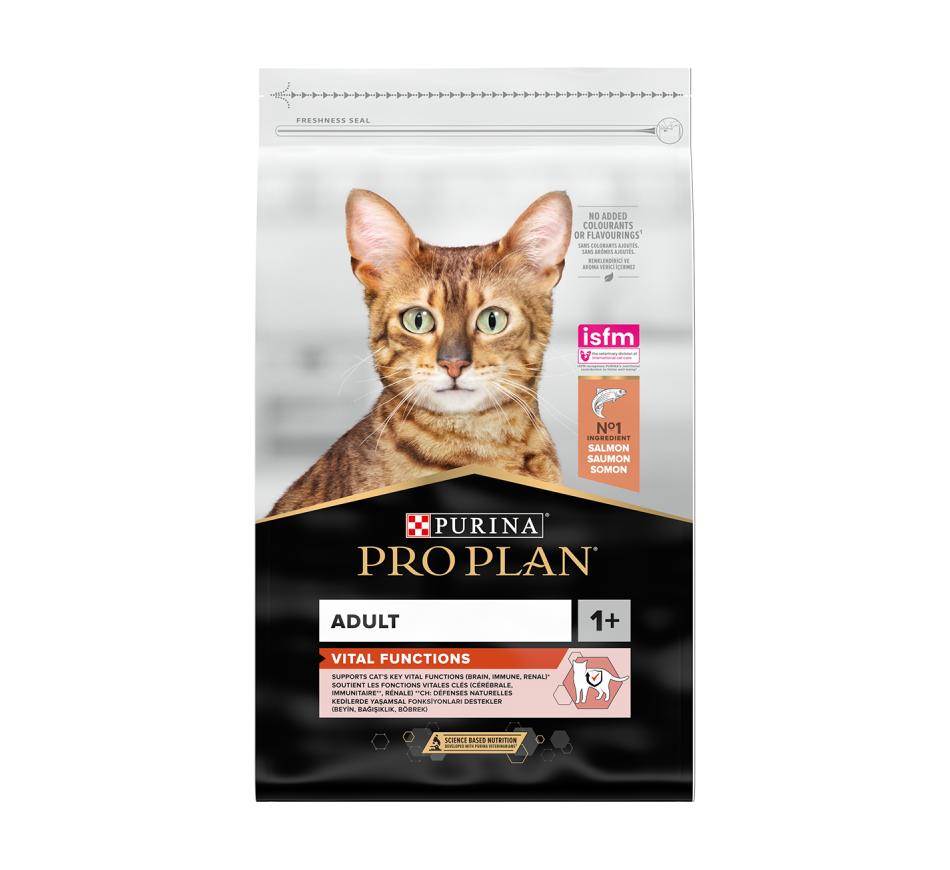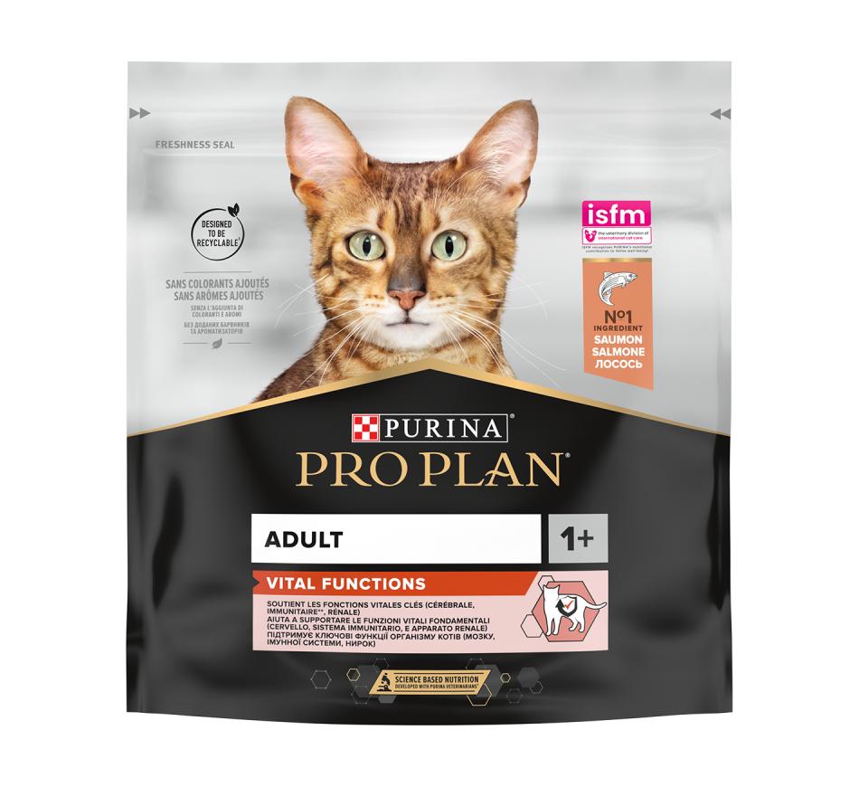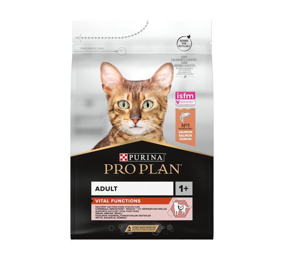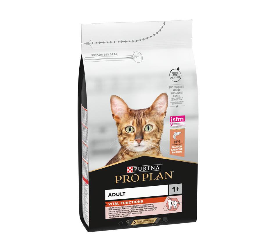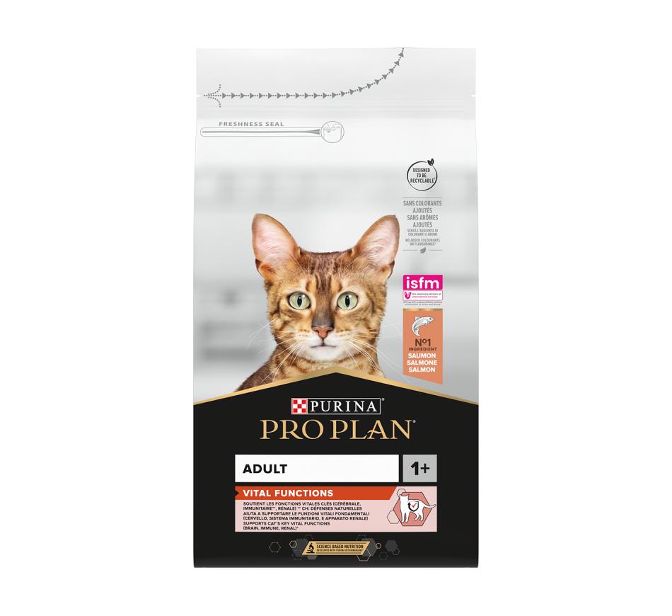 Purina Pro Plan Adult con Salmón es un alimento completo para gatos adultos que contiene todos los nutrientes que tu gato necesita para su vitalidad diaria y su salud a largo plazo.