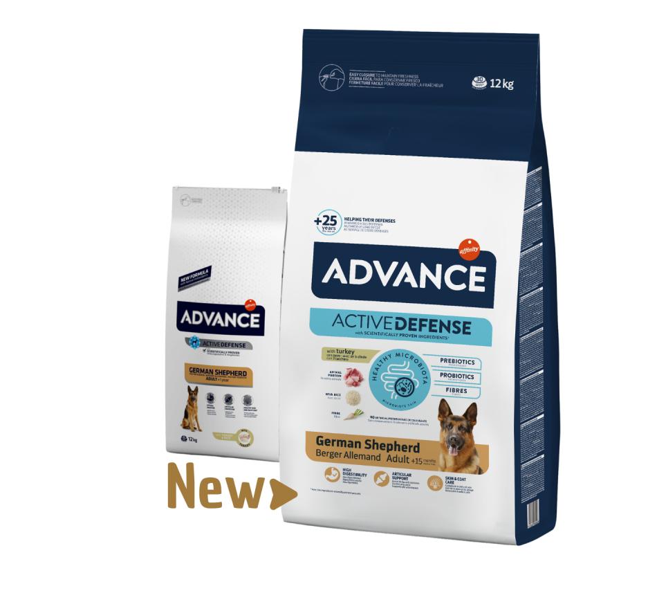 Alimento de elevada qualidade especialmente criado para satisfazer as necessidades nutricionais de cães de raça Pastor Alemão a partir dos 2 anos de vida.