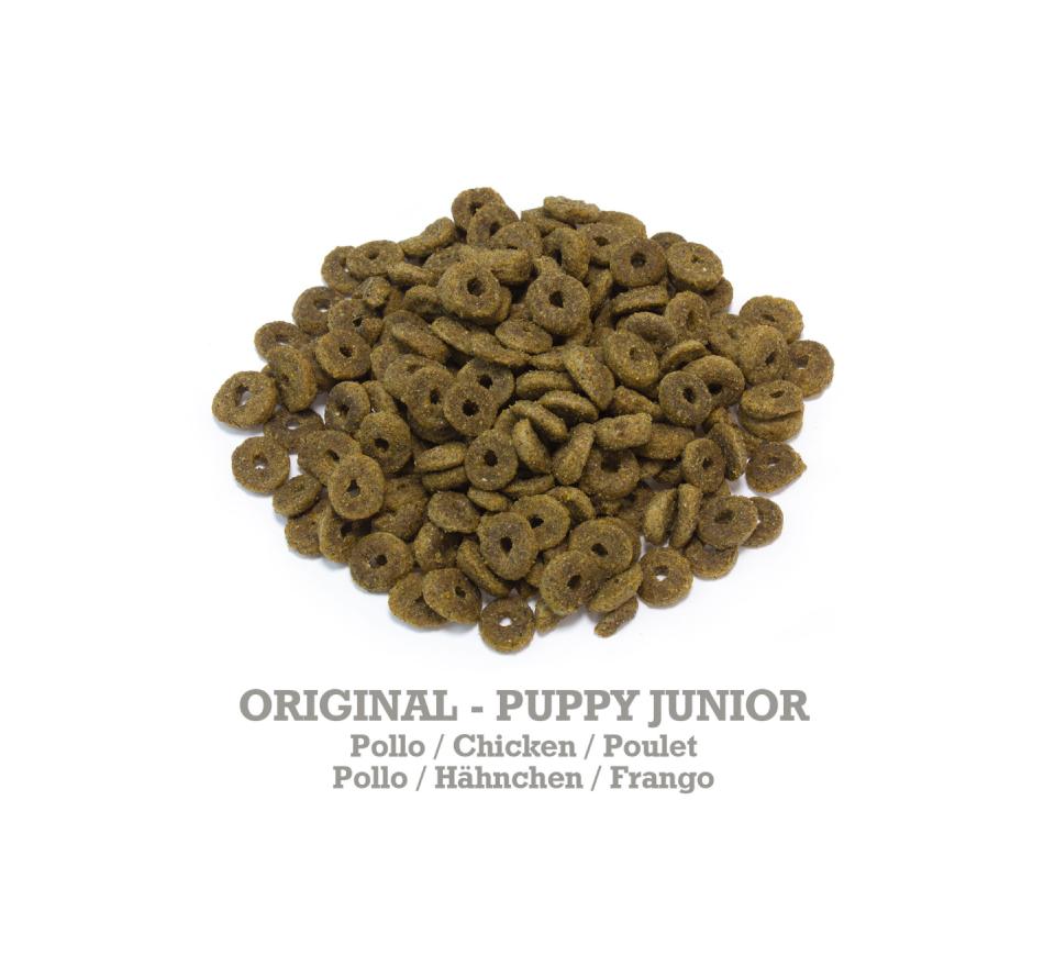 Alimento seco premium para cachorros, cães jovens e mães grávidas ou lactantes , elaborado com frango, arroz e ingredientes naturais.