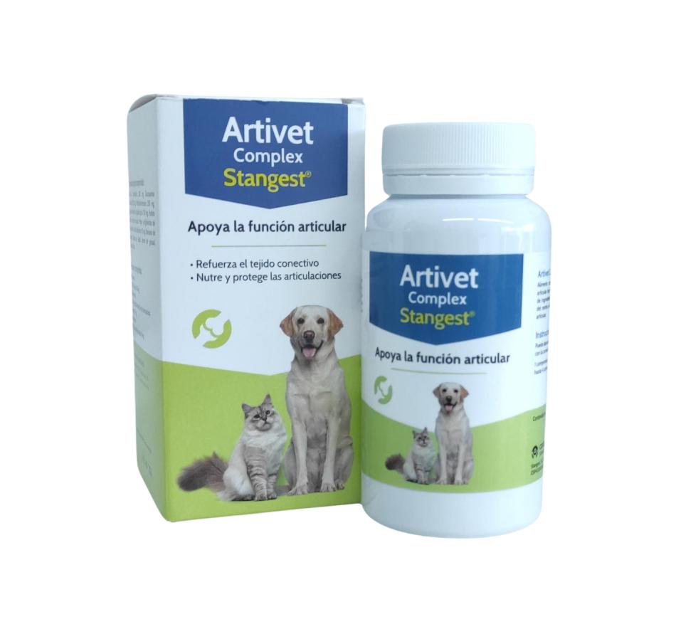 Artrivet Complex Stangest é um alimento complementar ideal para apoiar a função articular de cães e gatos. Fornece uma combinação única de ingredientes que nutrem o tecido conjuntivo, protegem do stress oxidativo e promovem uma mobilidade articular ideal.