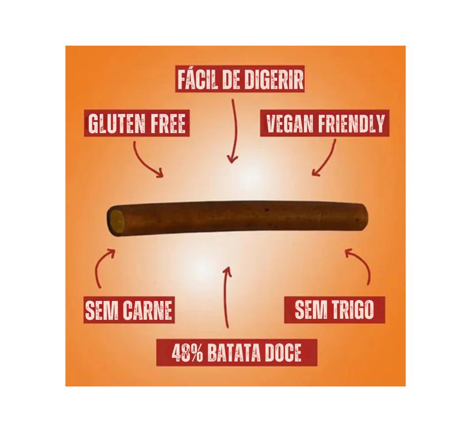 Pawtato Peanut, Apple & Cinnamon Sticks são feitos com batata doce nutritiva e palitos recheados. Baixo teor de gordura.