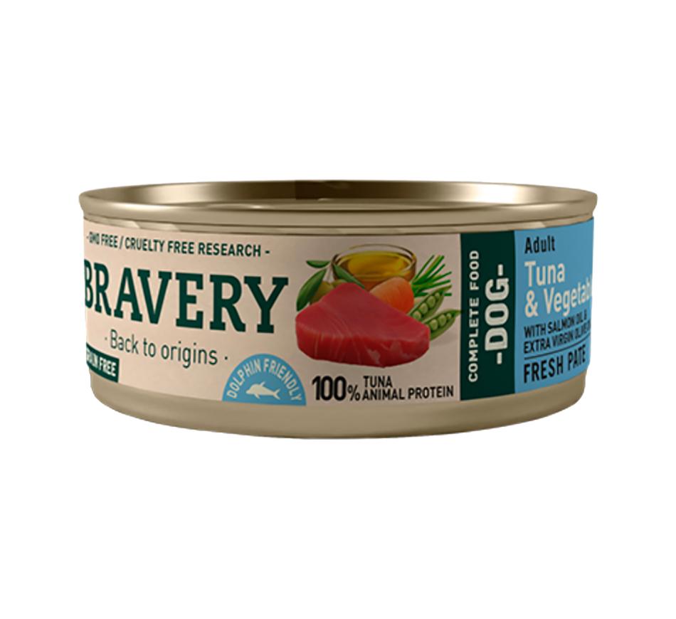 Bravery Dog Wet Tuna & Vegetables (cenouras e ervilhas) é um alimento húmido Natural, sem cereal, com antioxidantes, sem corantes e conservantes artificiais, gluten free.