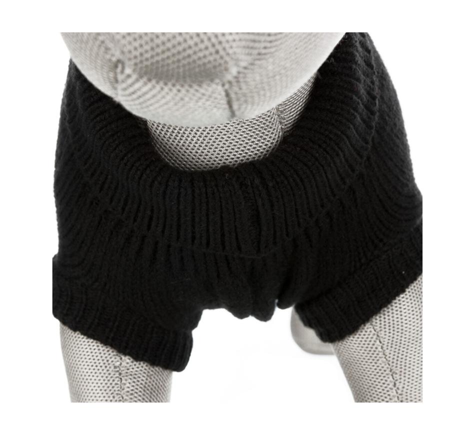 Camisola de lã sintética, preta, para cães, com passadores para as patas traseiras. Mantenha o seu melhor amigo quente e confortável nos dias mais frios.