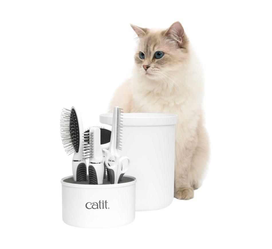 O Grooming kit Catit pelo comprido inclui todas as ferramentas que precisa para manter o pelo e as unhas do seu gato saudável e bonito.