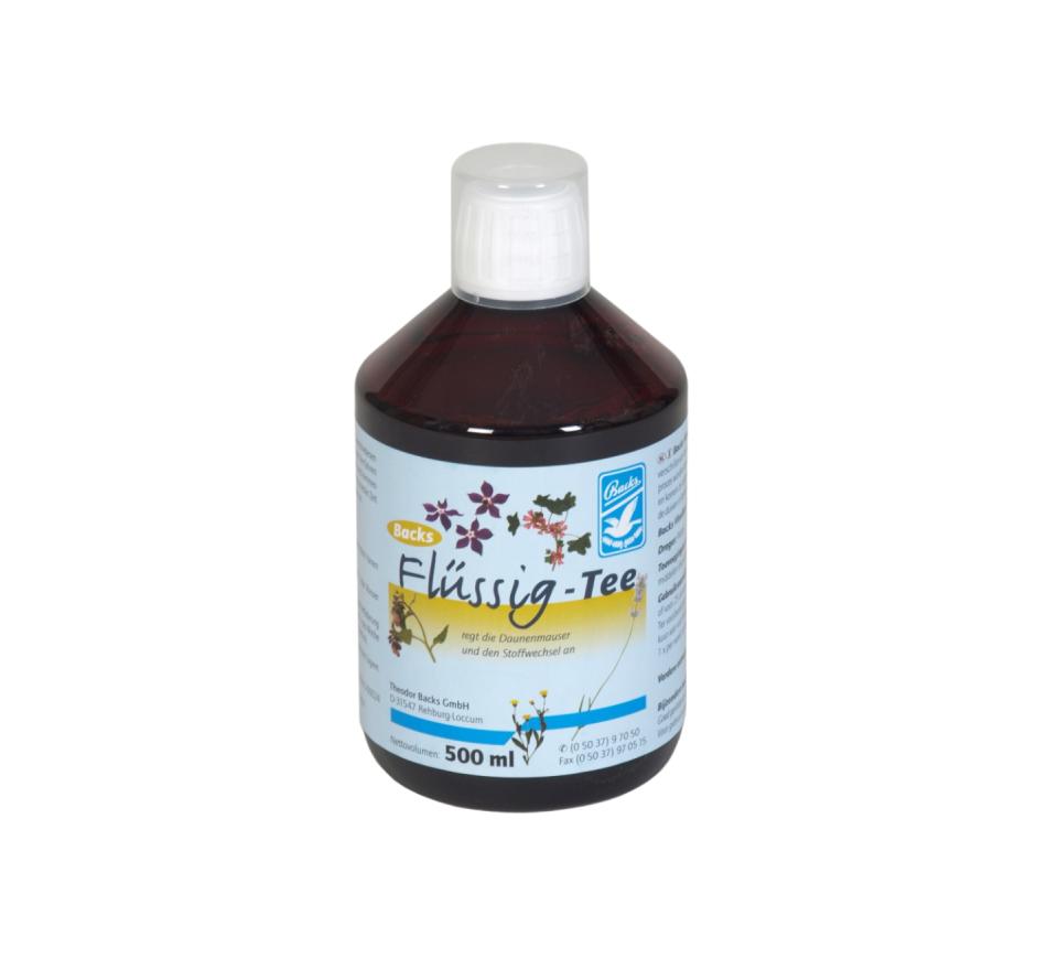 Chá 21 Plantas líquido (Flüssig-Tee) Backs é uma mistura de ervas composta por 20 ervas, folhas, raízes e flores diferentes. O chá líquido Backs deixa os pombos em ótima forma em pouco tempo e estimula a muda de penas e o metabolismo.