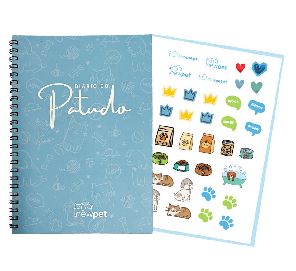 NOTA: Para personalização dos autocolantes do “Diário do Patudo”, envia o nome e a foto do teu Patudo por WhatsApp ou para info@newpet.pt, indicando o número da encomenda.