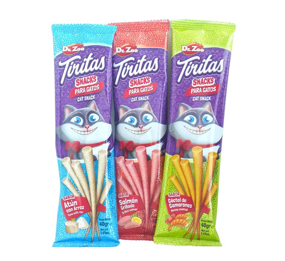 Tiras de Atum e Arroz da Dr. Zoo,em forma de sticks, é um snack de qualidade e bastante saboroso, indicado para gatos.
