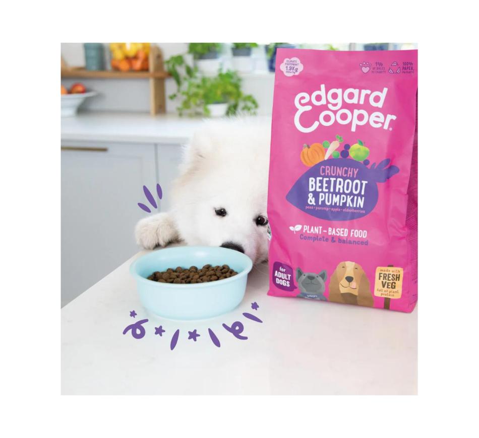 A ração Edgard & Cooper de origem vegetal para cães adultos é um alimento completo e equilibrado feito a partir de fruta e legumes frescos (até 20%), e portanto, rica em proteína vegetal, que oferece uma textura crocante que deleitará o paladar dos cães mais exigentes e muita fruta saborosa. E ao não ter carne na sua composição, este alimento também resulta benéfico para aqueles cães que podem sofrer alguma reação alérgica ou intolerância relacionada com o consumo de carne.