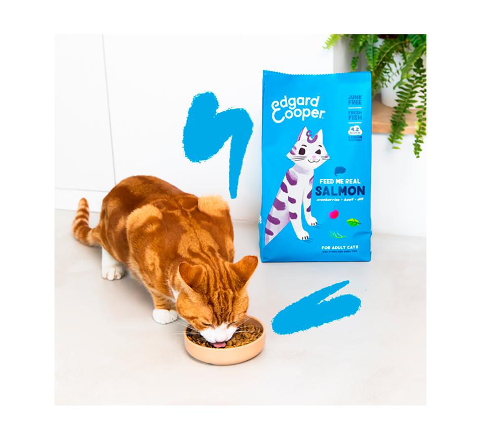 A ração Edgard & Cooper com Salmão fresco mantém a vitalidade do seu gato com uma fórmula rica em peixe e enriquecida com frutos vermelhos e plantas medicinais.
