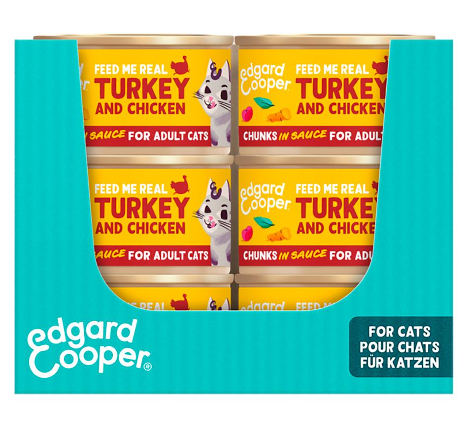 A comida húmida em Chunks Edgard & Cooper oferece ao seu gato deliciosas receitas de carne fresca em molho, com um extra de vitaminas e hidratação.