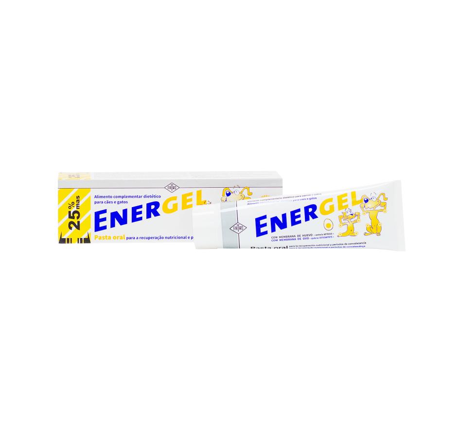 Energel é uma pasta oral indicada para a recuperação nutricional e os períodos de convalescença. Energel é um alimento dietético para cães e gatos que contém um alto nível de vitaminas e aminoácidos essenciais; isto ajuda a que o animal se recupere rapidamente quando tiver carências nutricionais.