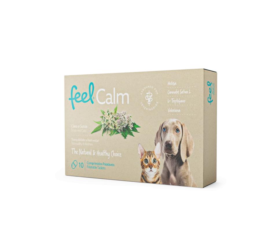 FEELCalm é um Alimento Complementar para cães e gatos, que promove o conforto e equilíbrio do animal de companhia. Formulado com intuito de atuar em acontecimentos esporádicos como banhos, tosquias, viagens, festas, desmame e estadias em hotéis, desencadeando relaxamento e tranquilidade.