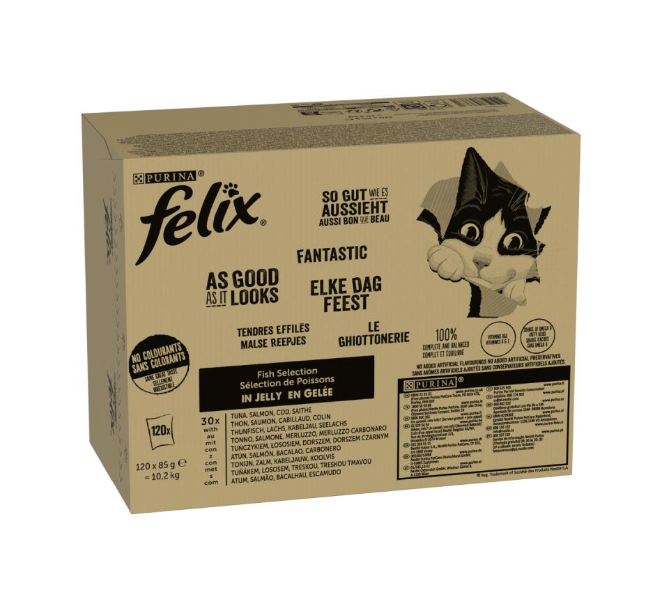 FELIX Fantastic está disponível numa variada gama de deliciosas refeições numa suculenta gelatina para satisfazer o gosto do seu gato por variedade todos os dias. Sabem mesmo tão bem como parecem! FELIX - Simplesmente Irresistível!