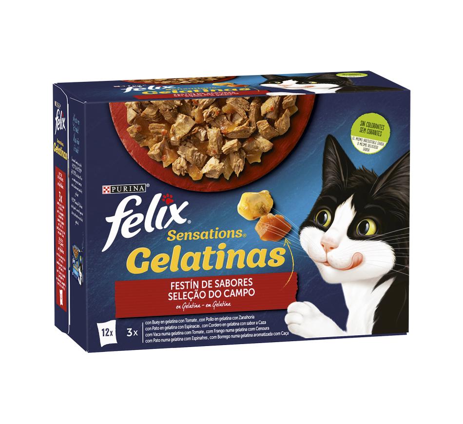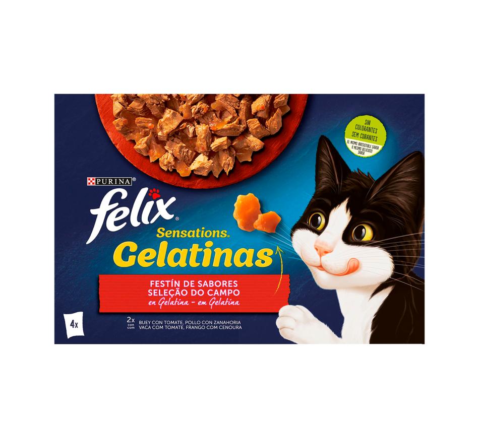 Felix Sensations Gelatinas é uma gama de deliciosas refeições preparadas com ingredientes de qualidade com um aspeto, aroma e claro, com um sabor delicioso para o seu gato!