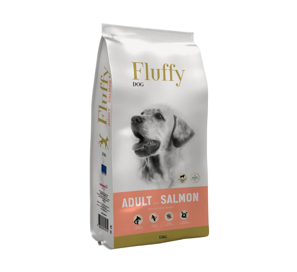 Escolha Fluffy Cão Adulto Salmão para garantir que seu cão cresça saudável, forte e feliz.