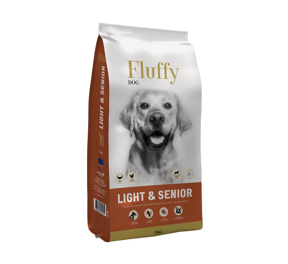 Fluffy Cão Light & Sénior é um alimento seco e completo formulado para cães seniores ou cães em dieta, garantindo todos os nutrientes para um desenvolvimento saudável.