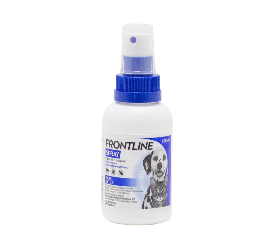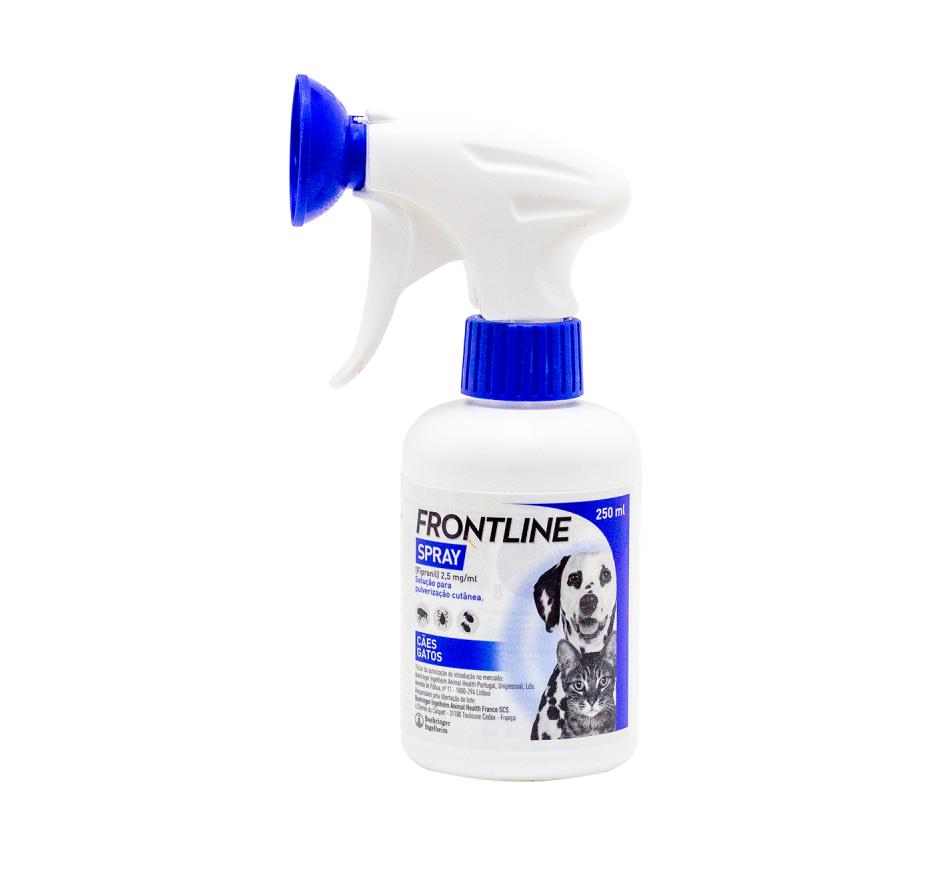 O Frontline Spray é um produto contra parasitas externos dos cães e gatos, apresentado sob a forma de solução para aplicação tópica, em spray, que mata rapidamente as pulgas, piolhos e carraças.