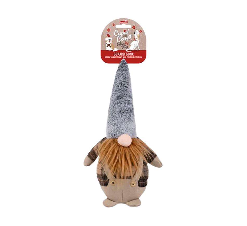 Gerard Gonk 16x33cm - Rosewood é um brinquedo fofo e ternurento, com cores vibrantes, texturas agradáveis e com detalhes encantadores, irá deliciar o seu pet nesta época natalícia.
