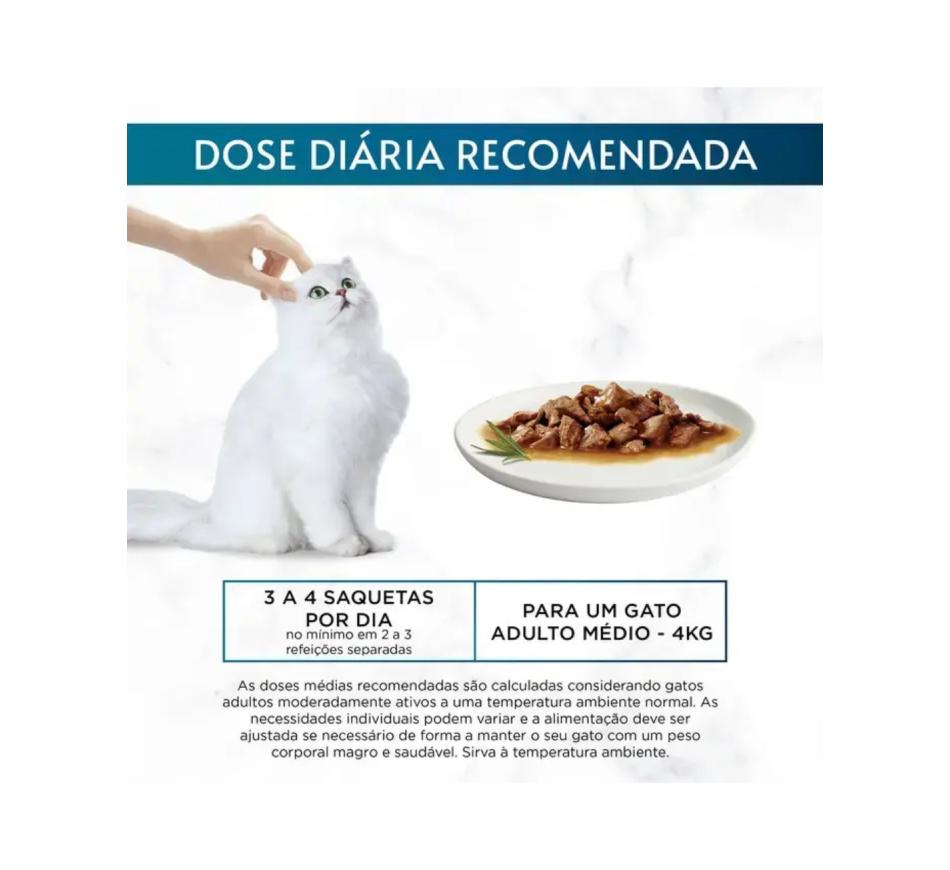 Alimento Completo húmido, em finos pedaços, para gatos adultos, de peixe do oceano, linguado, salmão e atum. Uma variedade de receitas de palatabilidade irresistível, que irão satisfazer o seu felino.