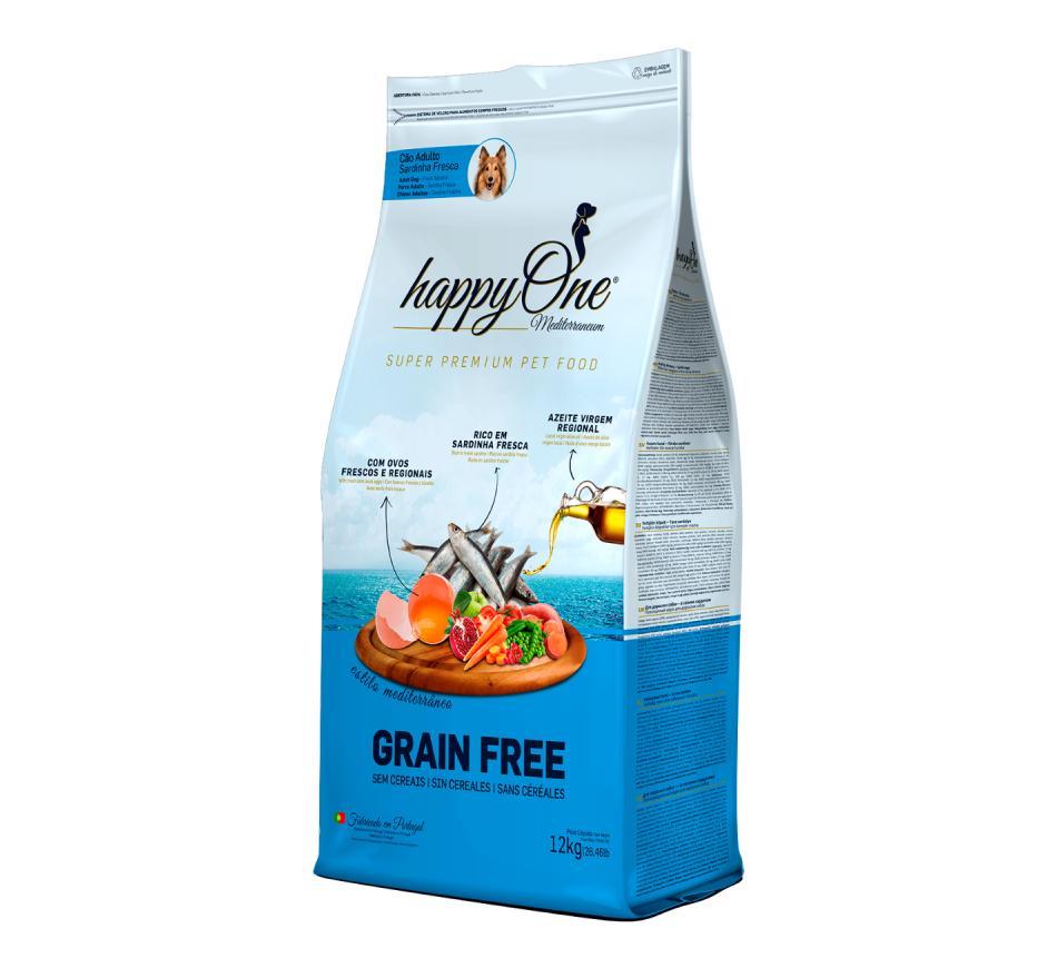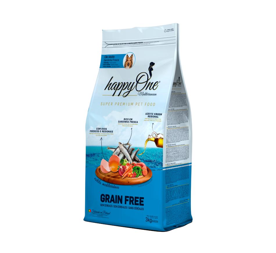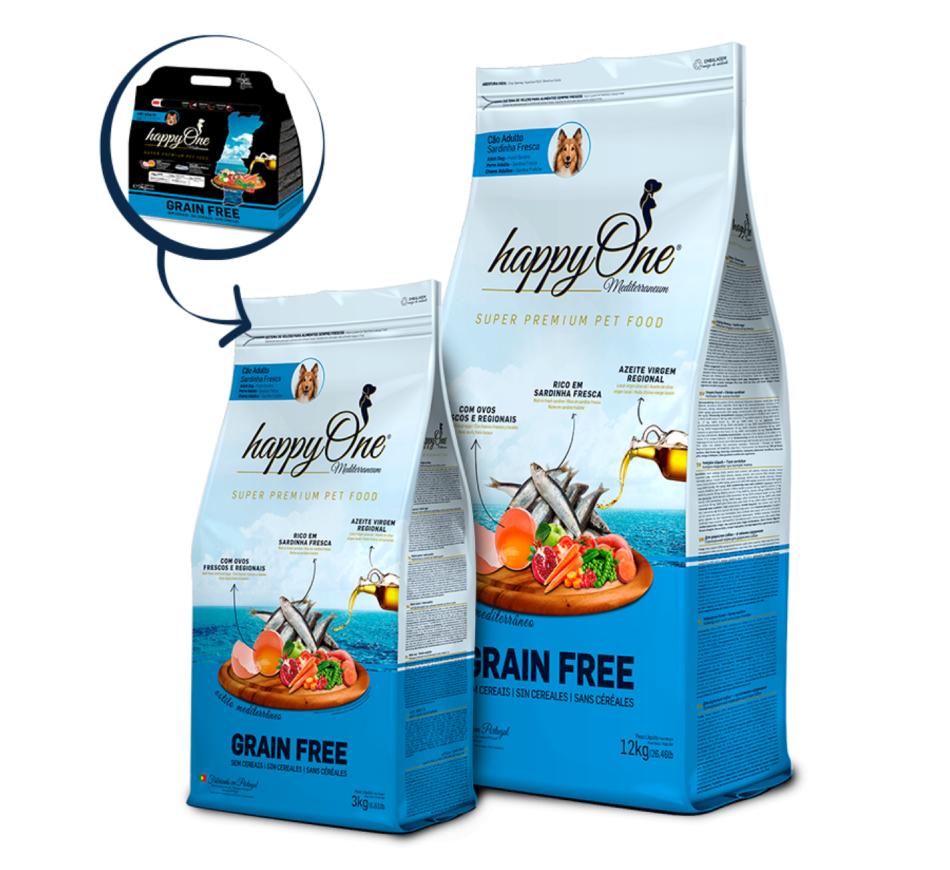 Happyone Mediterraneum Cão Adulto Sardinha é rica em sardinha fresca, deliciosa fonte de roteína digestível, é uma ração inspirada no estilo Mediterrâneo: nutrição super premium sem cereais, com ovo fresco e azeite regional.