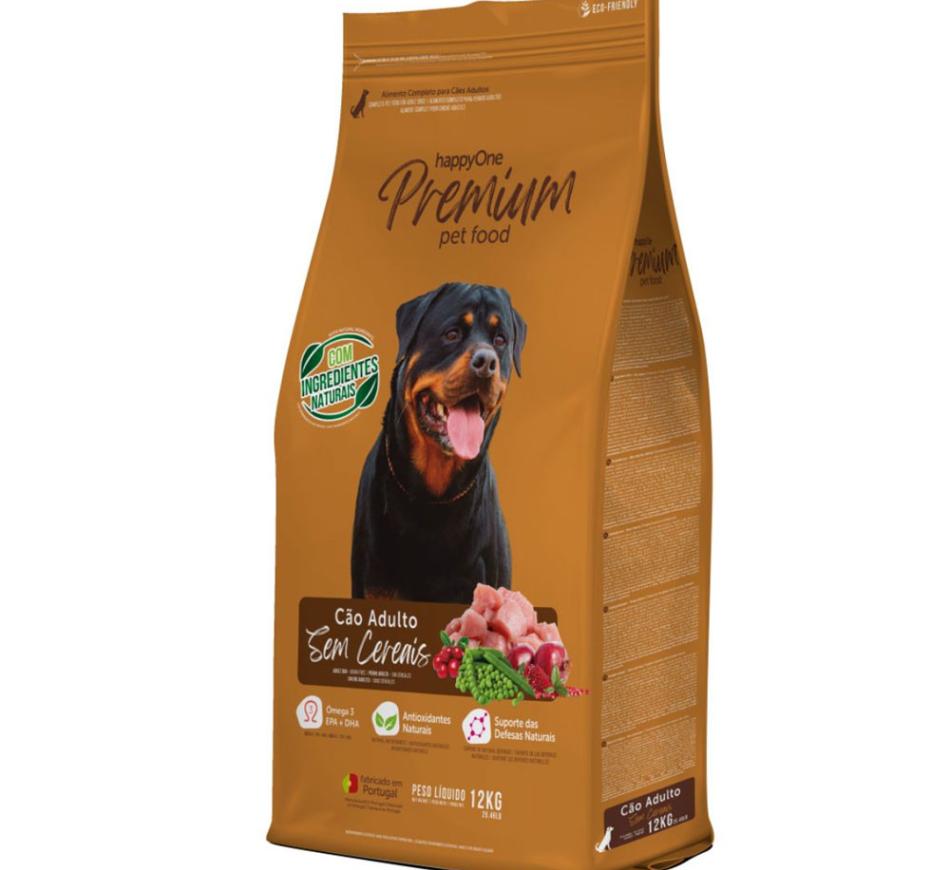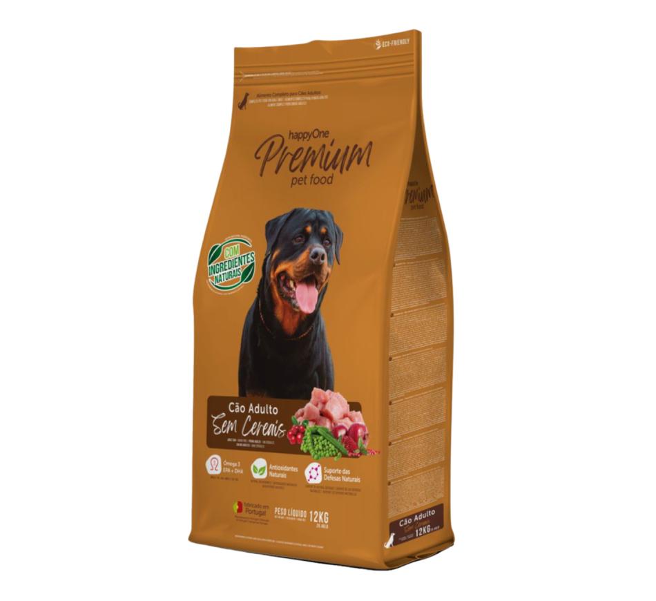 HappyOne Premium Cão Adulto Grain free, contém ingredientes naturais, permitindo que o seu patudo desfrute de uma refeição mais saborosa e saudável. Ajuda ao suporte das defesas naturais do cão, contribui para a saúde articular, promove a boa qualidade das fezes e o equilíbrio da flora intestinal e tem benefícios para pele e para o pelo.