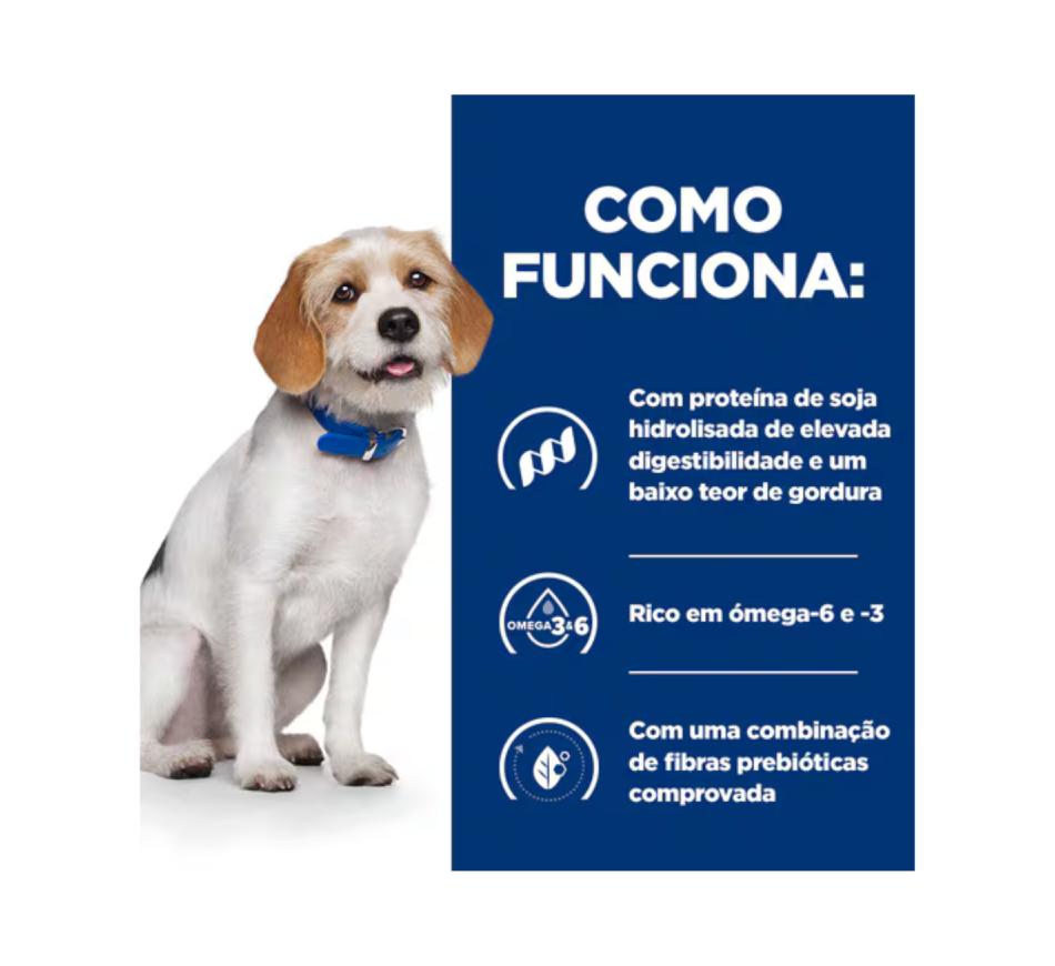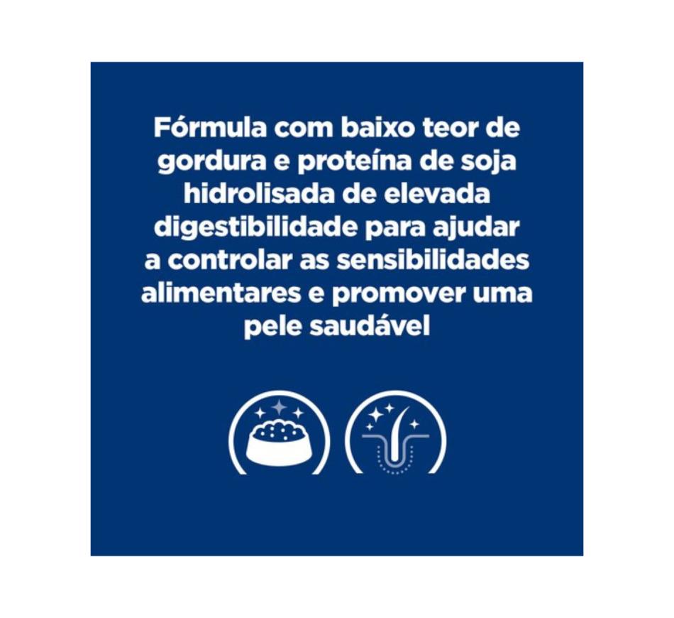 Alimento dietético completo e equilibrado, para cães, para apoiar as intolerâncias com sensibilidades alimentares e à gordura. Com proteína de soja hidrolisada e baixo teor de gordura para ajudar a minimizar reações adversas alimentares.