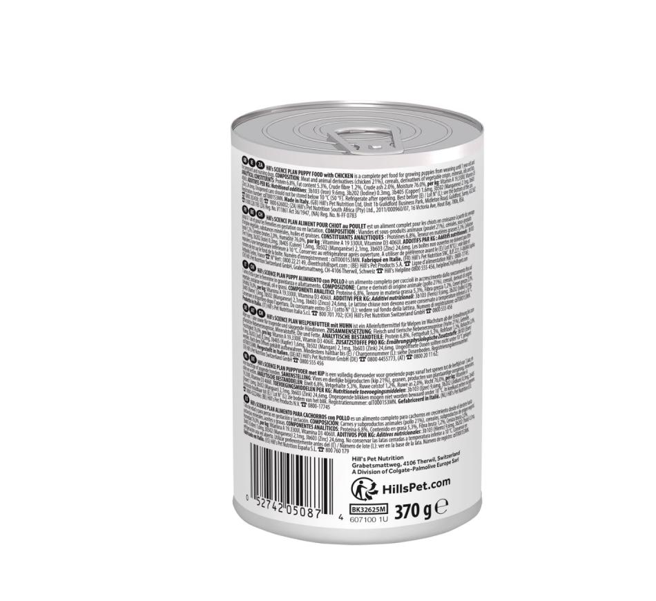 Hill's Science Plan Cachorro Frango em patê é ideal para cachorros nesta fase inicial da vida e a sua receita de textura macia e suave e um sabor que o seu patudo vai adorar. Formulado com equlibrio perfeito de sabor e nutrição é feita com ingredientes de alta qualidade e fornece ao seu cachorro proteínas que podem ajudar a construir e manter a massa muscular magra.