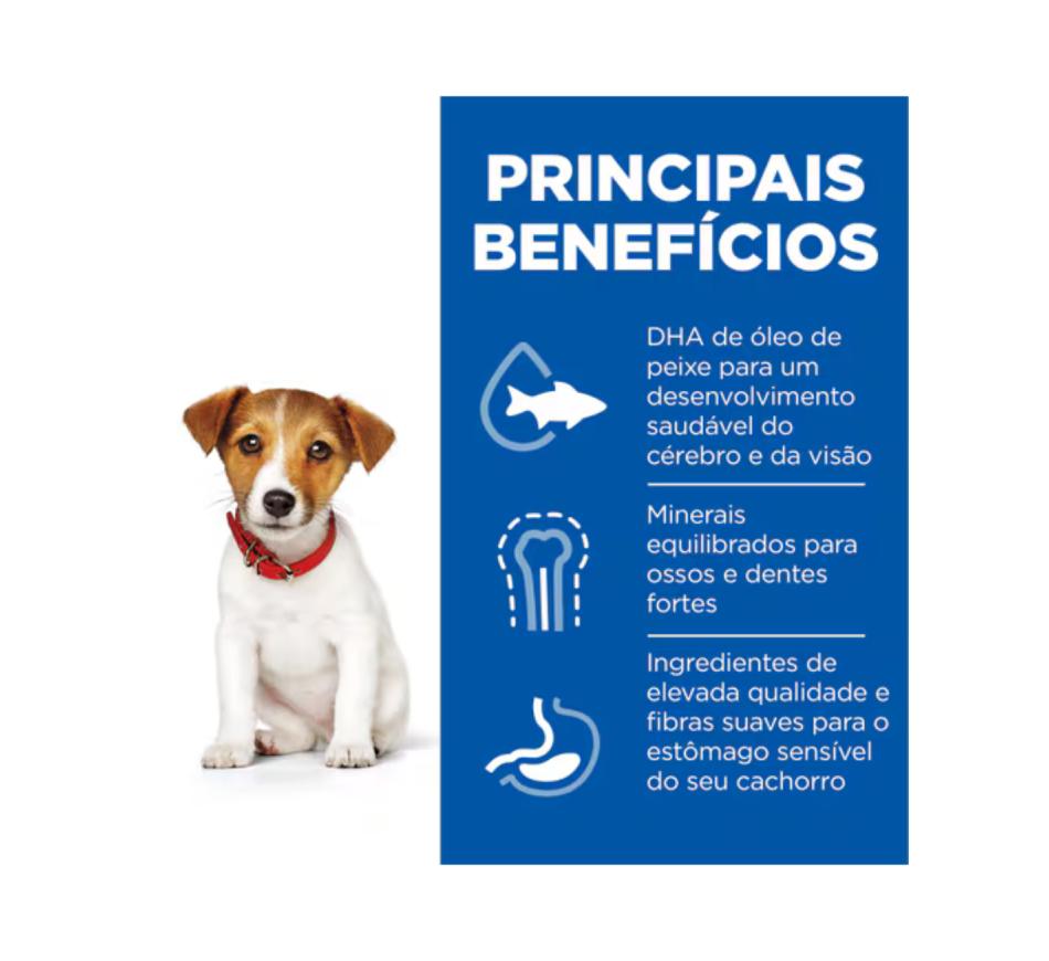 Hill's Science Plan alimento para cachorro de raça pequena e mini com frango (frango 17%; total aves 27%) é um alimento de elevada qualidade e completo para cachorros de raça pequena com 4 semanas até 12 meses de idade e para cadelas gestantes ou lactantes.