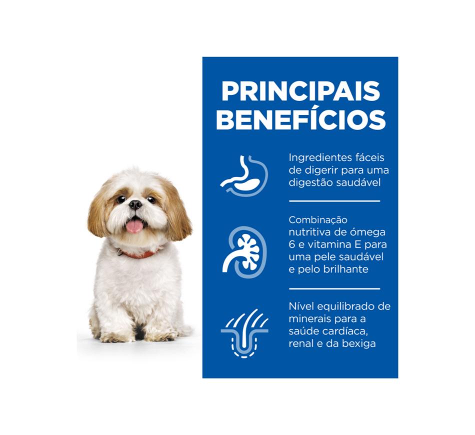 Cachorros ou cães adultos (com menos de 7 anos de idade). Cadelas gestantes ou lactantes. Durante a gestação ou lactação, o alimento das cadelas deve ser alterado para Hill's Science Plan alimento para cachorro de raça pequena e mini.