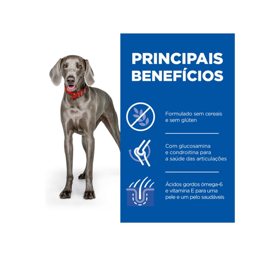 Science Plan No Grain, favorece um sistema imunitário saudável, a massa muscular e um pelo brilhante.