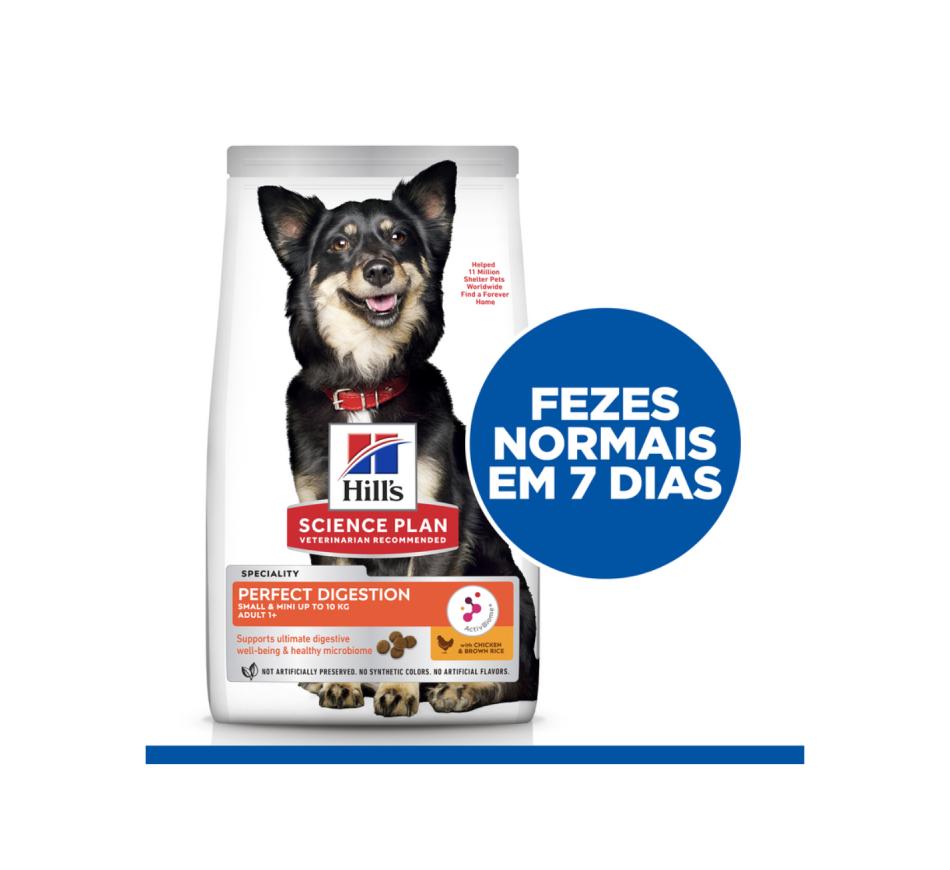 Hill's Science Plan Perfect Digestion alimento para cão adulto 1+ de raça pequena e mini com frango e arroz integral é um alimento completo para cães adultos com 1 ou mais anos de idade.