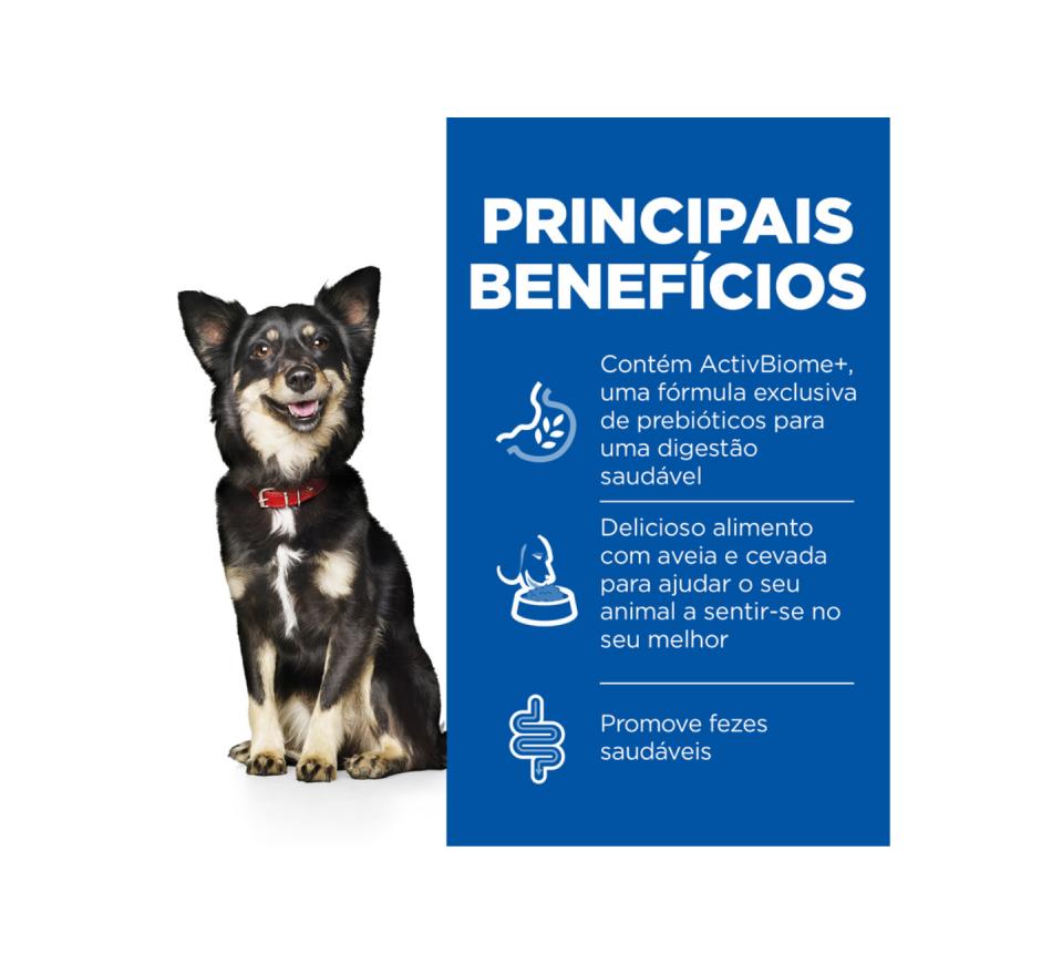 Hill's Science Plan Perfect Digestion alimento para cão adulto 1+ de raça pequena e mini com frango e arroz integral contém ActivBiome+, uma combinação especial de prebióticos para ajudar a nutrir e a equilibrar rapidamente o microbioma único do seu animal de companhia.