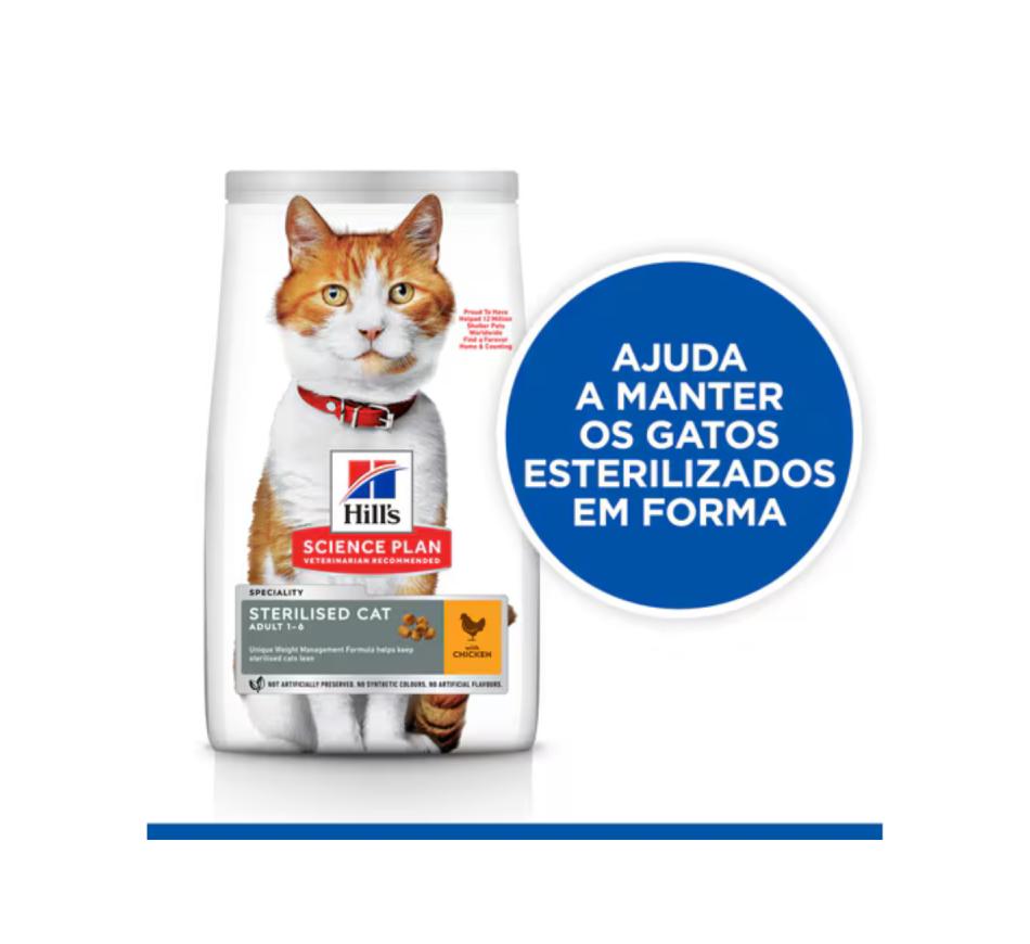 Hill's Science Plan Gato Adulto Esterilizado com frango é um alimento completo, com frango indicado para gatos esterilizados com 1 a 6 anos de idade.