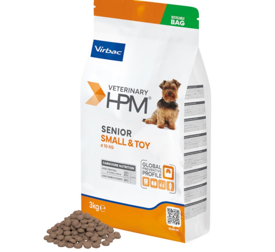 Os processos oxidativos responsáveis pelo envelhecimento intensificam-se nos cães mais velhos. As funções principais devem ser preservadas. A diminuição dos níveis de actividade causa uma predisposição para o desgaste muscular e anquilose articular. Foi por estas razões que a virbac desenvolveu veterinary hpm™ senior dog small & toy, para responder às necessidades específicas do seu cão sénior.