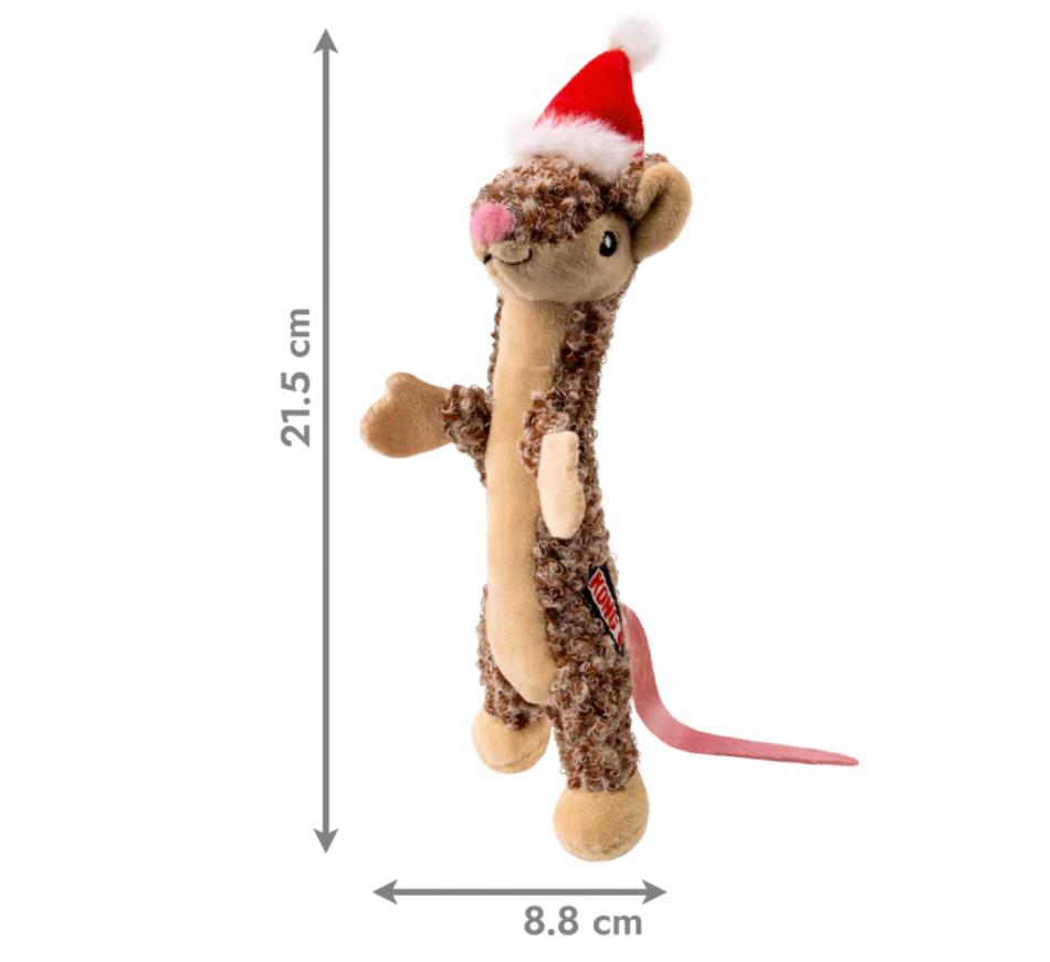 KONG Holiday Cat Luvs Mouse com detalhes como a cabeça, as patas e o rabo facilitam a captura, tornando este ratinho um companheiro perfeito. O catnip premium norte-americano da KONG no seu interior faz com que os gatos queiram voltar para mais brincadeiras energéticas.