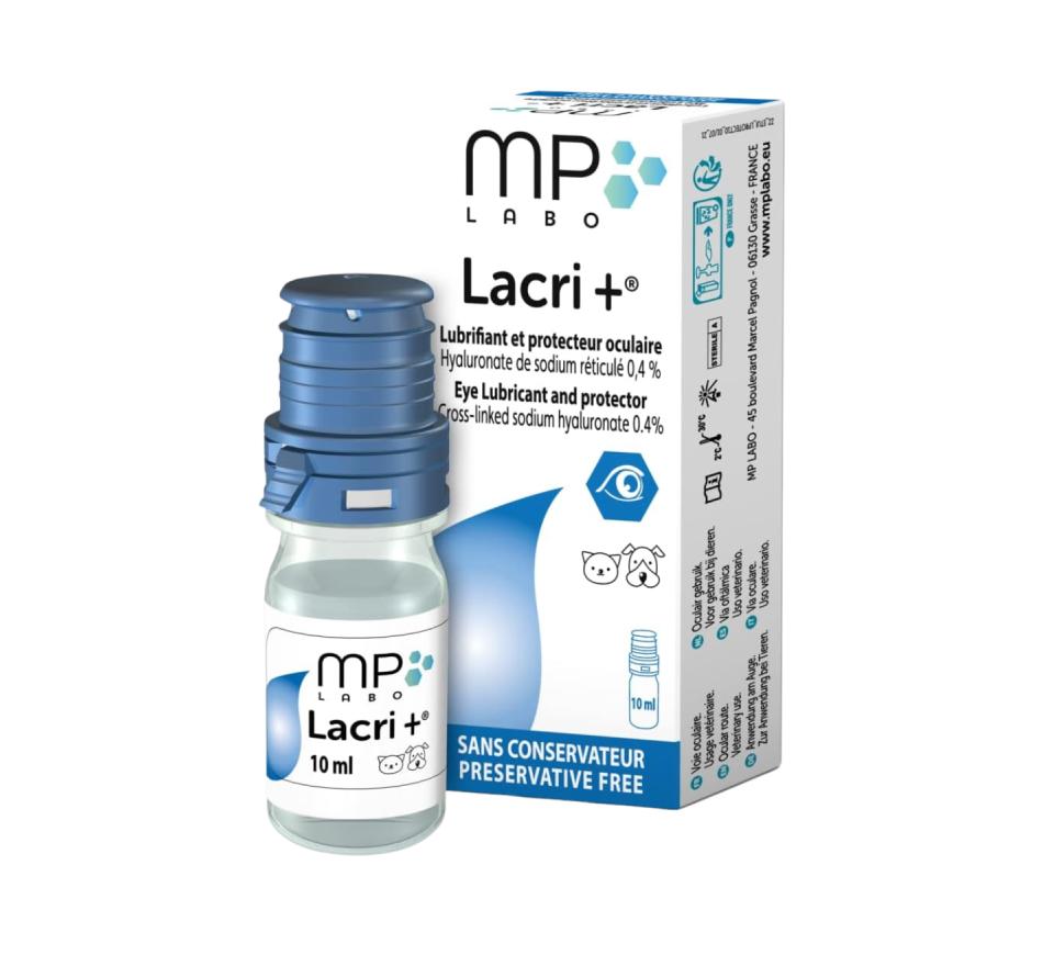 Lacri+ é uma gama de protetor ocular sem conservantes, para melhorar o conforto dos olhos em gatos e em cães.