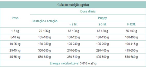 Alimento completo e equilibrado, especificamente formulado para cachorros (2-12 meses) e para fêmeas em período de gestação e lactação.