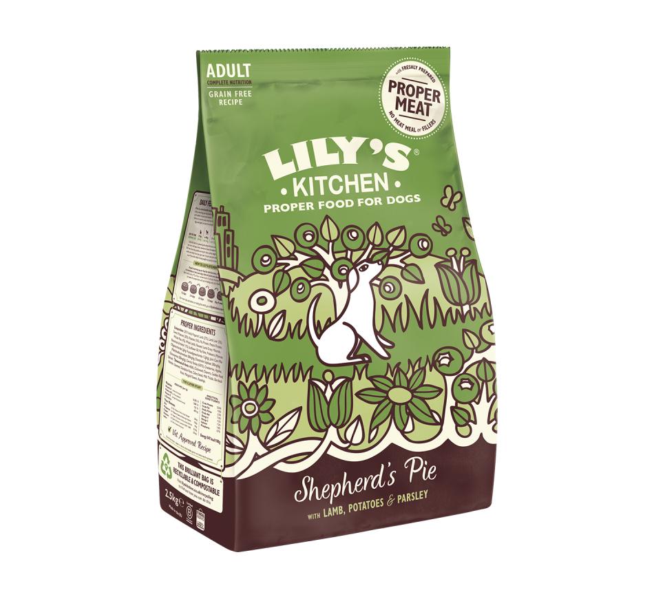 Lily's kitchen Cão Shepherd's Pie Lamb é um alimento seco completo para cães com + 4 meses, sem cereais, produtos frescos e condroitina e glucosamina para suporte articular.